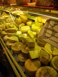 The second day, we had a scheduled food tour in the morning which was very interesting. They brought us to their big fresh markets (much like the Boqueria here in Barcelona) and we got to try Pate, which was...interesting. I think if I had eaten it before I had known what it was, I would have enjoyed it much more, but thinking about duck liver is not the most appetizing thing. After that we got to try some local wine and cheese that were stinky but amazing. Then our tour guide took us around to some of the famous churches in the town which were very beautiful. Once the tour was over we had the rest of the day to do whatever we wanted, so what did we do? We shopped of course. Everything was pretty expensive so we didn't end up buying very much at all, but going to all these hip french stores was amazing. The way people dress in this town, and I am guessing all of France, makes me feel like I know nothing about fashion what so ever. They all wear these very simple but elegant/hip clothes with even better shoes that makes me long to look like them one day. A girl can dream right? After about five hours of wondering through the city, we went back to our hotel to relax for a while and attempt to find a TV station in english. We decided to be a little more local with dinner this evening and just got a baguette, cheese, and a bottle of wine and ate it in the main square.